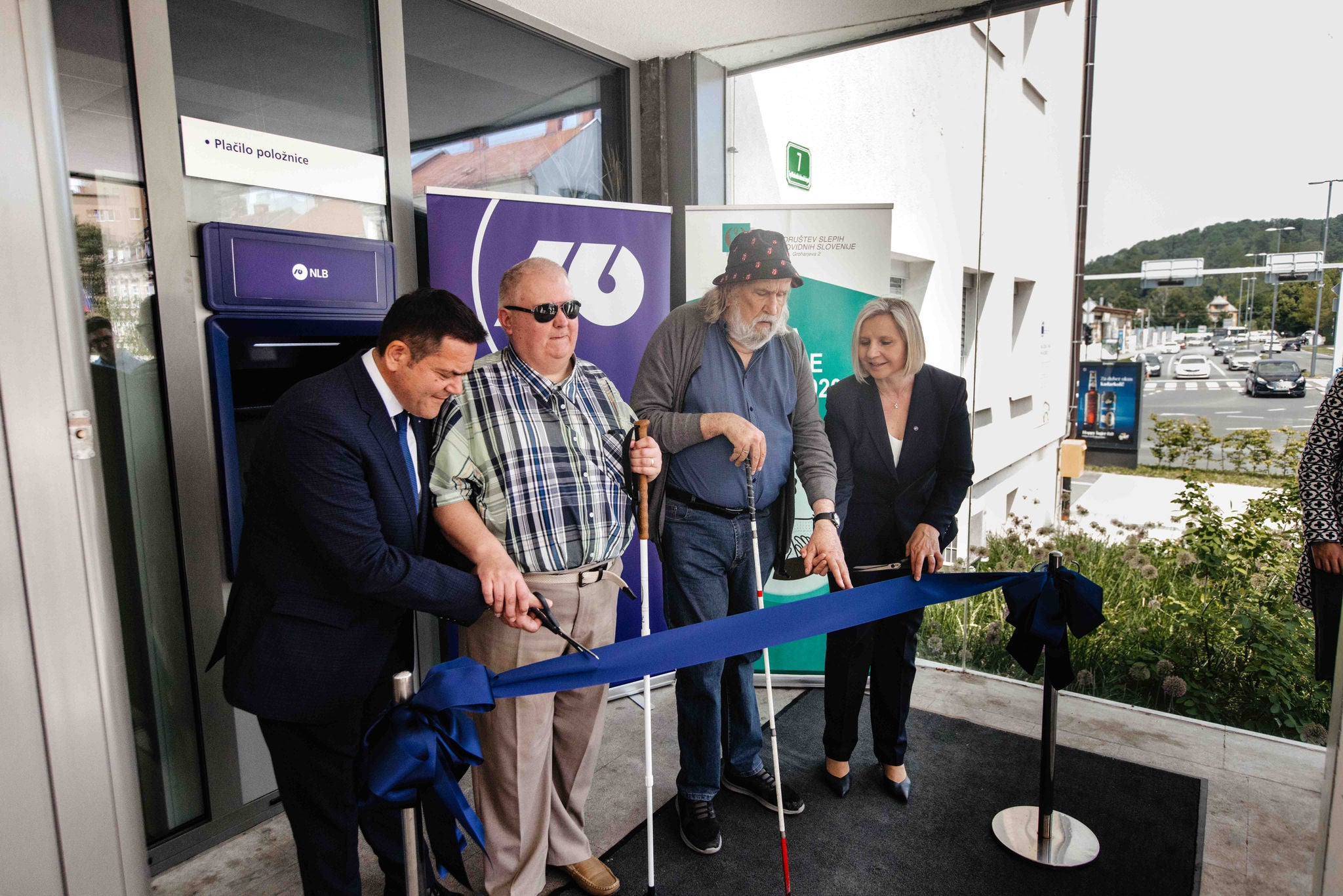 V NLB smo, v sodelovanju z Zvezo društev slepih in slabovidnih Slovenije, določili 52 lokacij po celotni Sloveniji, kjer bomo do konca leta prilagodili bankomate. S pomočjo glasovnih navodil preko slušalk lahko slepi in slabovidni dvignejo gotovino ali preverijo stanje na računu. Bankomate, prilagojene potrebam slepih in slabovidnih, lahko uporabljajo tudi ljudje brez okvar vida, saj prilagojena uporaba bankomata poteka s pomočjo žičnih slušalk. Glasovno vodenje se namreč začne, ko program zazna, da so slušalke aktivirane in priklopljene na vhod za slušalke, ki se nahaja na bankomatu. Glasovno vodenje je za sedaj omogočeno v slovenskem jeziku.
